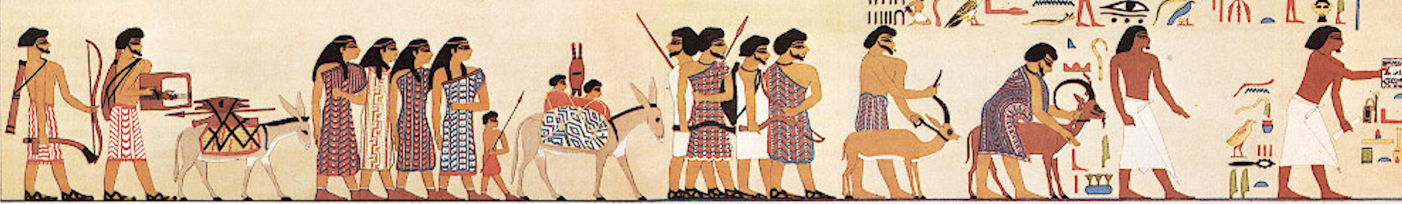 大约在同一时期,有记录显示,一些西亚外国人带着礼物拜访了法老,例如在第十二王朝官员克努姆霍特普二世(Khnumhotep II)的墓室壁画中就有描绘,克努姆霍特普二世也曾在森乌塞特三世统治时期任职。这些外国人可能是迦南人或贝都因人,他们被称为“阿穆”(Aamu,ꜥꜣmw),其中一位牵着一只努比亚羱羊的男子被称为“希克索斯人阿比沙”(Abisha the Hyksos,𓋾𓈎𓈉 ḥḳꜣ-ḫꜣsw,Heqa-kasut,意为“希克索斯人”),这是已知最早出现“希克索斯人”这一名称的记载。