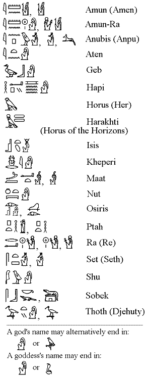 古埃及神的象形文字写法